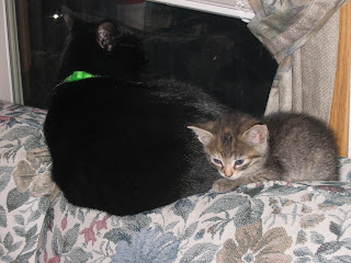 I'm not feeling creative enough to caption them. The older cats are starting to like the bitty one, I think. Baby lets her use her as a pillow and vice versa, so I know she's starting to warm up to her. Squeak will clean her on occasion and Mydna has pretty much adopted her as a sidekick. LOL